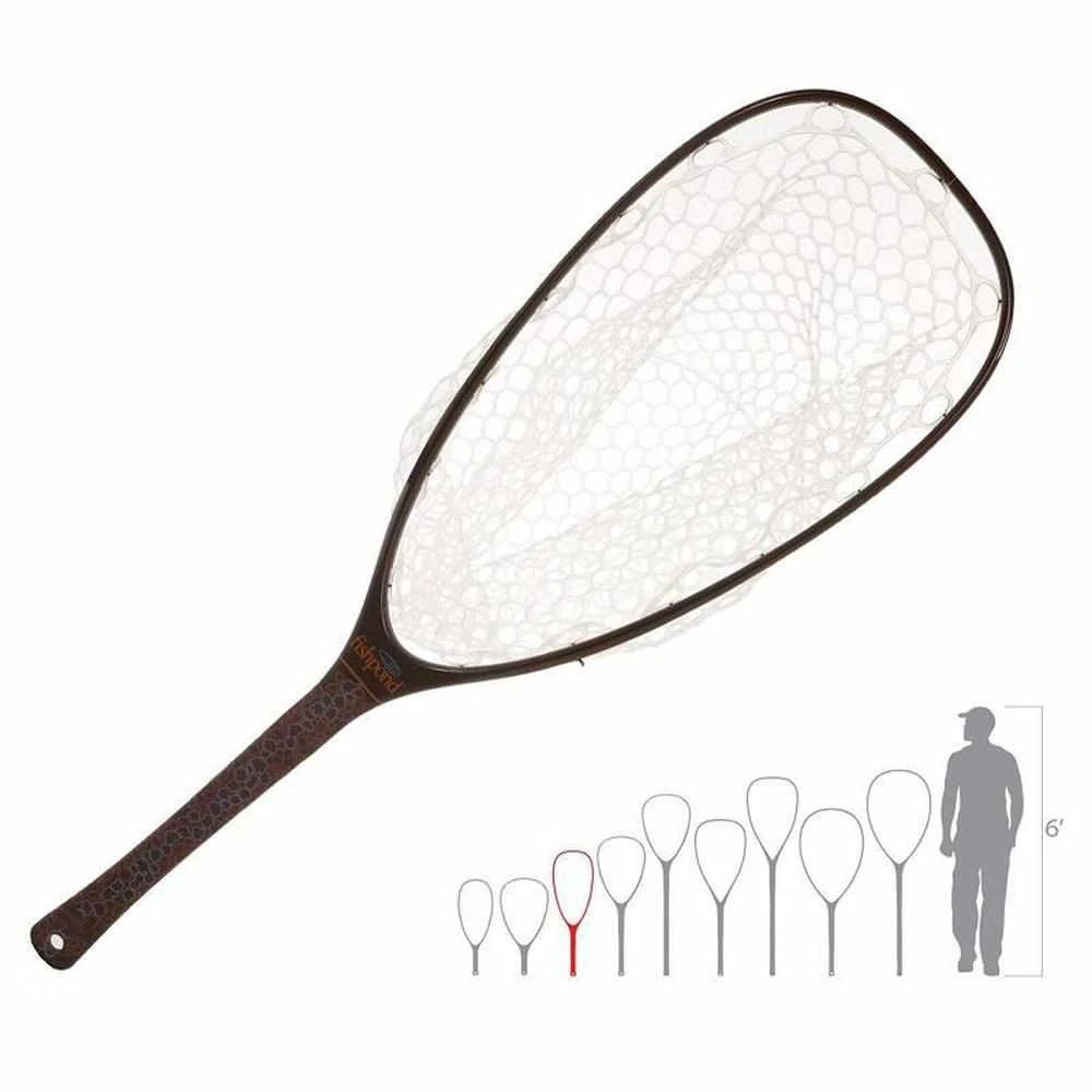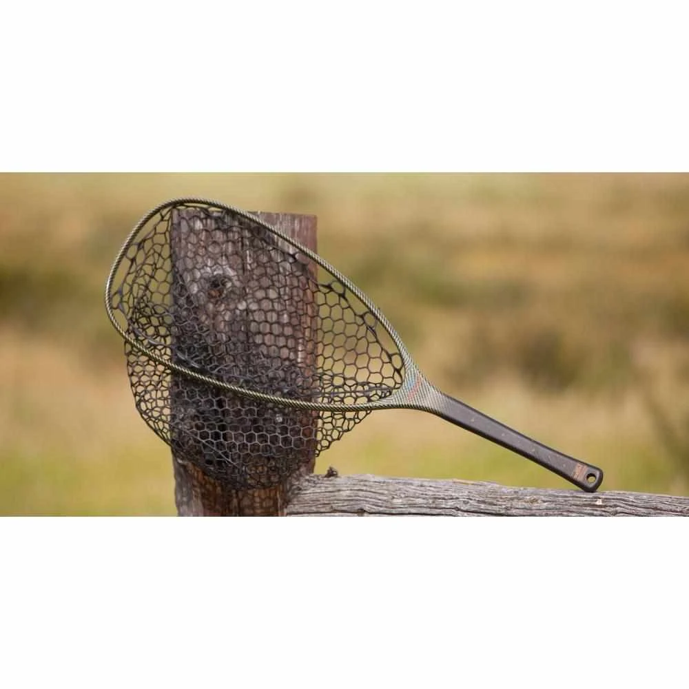 Nomad Nets are constructed with carbon fiber/fiberglass composite material. The result is a very lightweight and durable net. Nomad Nets are built for the conditions that prevail where great fishing exists; they are waterproof, UV protected, and float like a cork. All Nomad Nets come standard with a rubber bag.