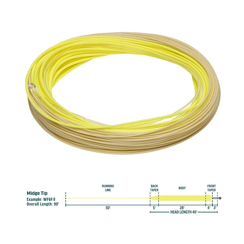 The Premier Midge tip is a floating line with a 3ft , clear intermediate tip that sinks 1.5 inches per second or a gray hover option that sinks 1 inch per second. This is deadly effective on windy days, when fishing in shallow bays, close to lake shores or over the top of weed beds, and is perfect for fishing nymphs, emergers, and chironomids (buzzers). Each line is built with a supple coldwater core, SlickCast coating, and welded loops on the front and back for fast rigging. With options available in regular (Midge tip) and long (Midge Tip Long), hover and intermediate, it is a must have line for lake anglers everywhere.