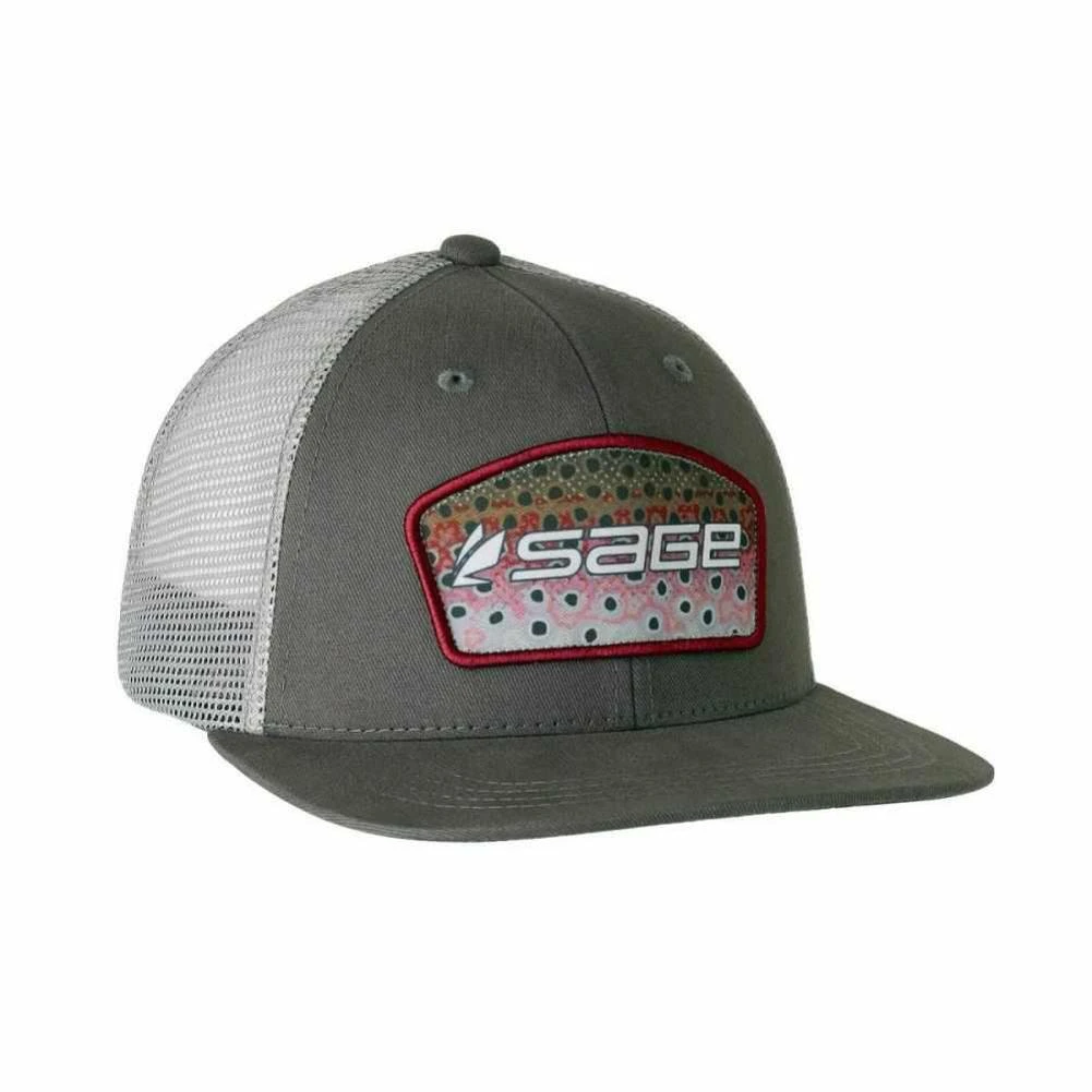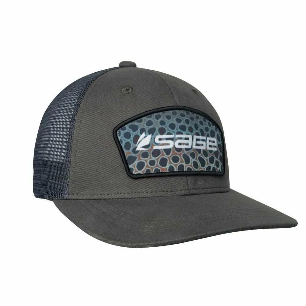 Sage Trucker Cap – A mesh back trucker cap that provides breathable protection on the water. Featuring the Sage logo over a fish scale patch by artist Casey Underwood on the front.