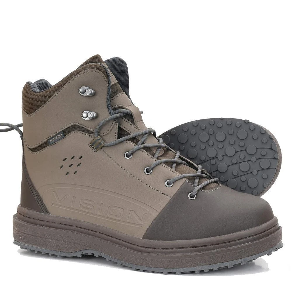 The Vision Koski boot is a robust yet lightweight wading boot crafted from durable PVC material. Unlike other fabrics, this material does not absorb water, resulting in quicker drying times and a lighter feel. The PVC construction provides excellent support, stability, and torsional stiffness, making it a reliable choice for wading, even in the harshest of environments.